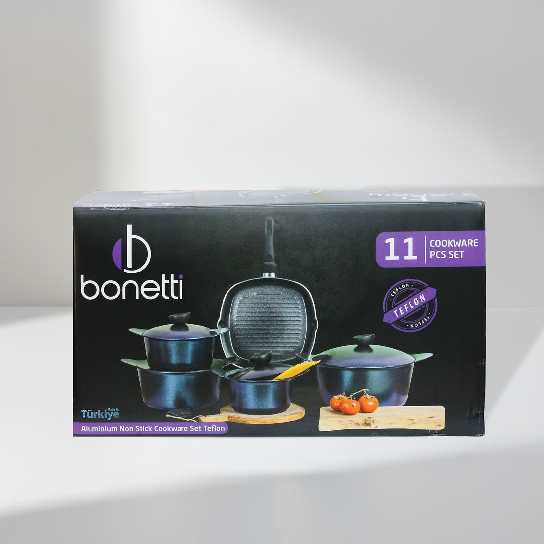 Bonetti 11-Piece Aluminum Non-Stick Cookware Set – Teflon Coated