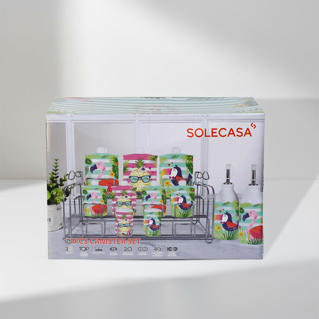 The SOLECASA 11-Piece Canister Set is perfect for storing sugar, tea, coffee, spices, and condiments....